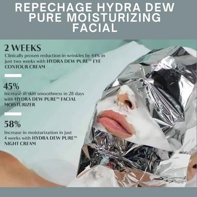 Indulge in the ultimate self-care treat with our Repechage Hydra Dew Pure™ Moisturizing Lift Facial, designed to deeply hydrate, lift, & restore your glow.