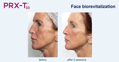 The PRX-T33 ® is a bio-revitalising product that is unique and hugely popular amongst celebrity circles. The PRX-T33 peel procedure stimulates skin renewal. It is intended for intensive skin renewal on the face, neck, décolleté area and hands, and it promotes the development of a new collagen framework. The result is an immediate lifting effect, improved skin turgor, smoother skin and narrower skin pores.